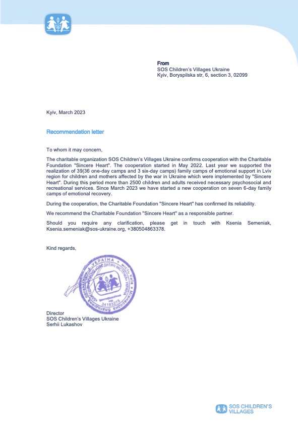 Letters of recommendation and acknowledgments